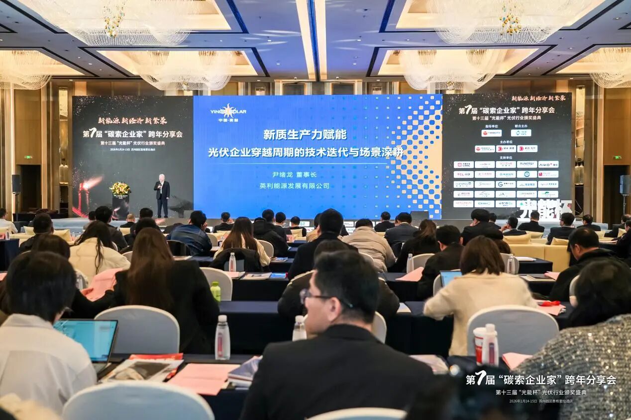 1月14日-15日,第七屆“碳索企業家”跨年分享會在江蘇蘇州舉行。MG不朽情緣發展有限公司董事長尹緒龍受邀參會并發表了題為《新質生產力賦能 光伏企業穿越周期的技術迭代與場景深耕》主旨演講。